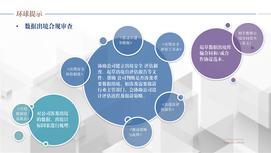 3. 建立数据出境合规体系:在出境前开展数据出境评估并落实安全保障制度与措施。当涉及数据出境时,企业应对出境数据的合法性、正当性、必要性和对目标国家的政治及法律环境进行安全评估,出具出境自评估报告。