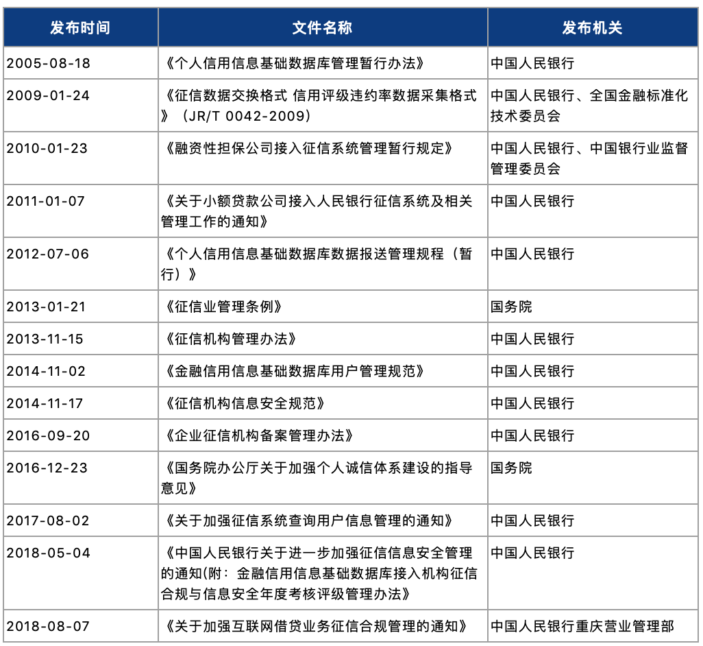 针对个人金融数据的保护,尤其是信用信息的保护问题,近几年来监管机构也积极响应,个人信息保护要求呈现不断提高的整体趋势,行业特定法规、政策和标准也不断出台。截至目前,有关征信行业发展及信用信息保护的主要法规及政策性文件梳理如下: