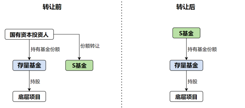 4. 有国资投资的存量基金(公司制或合伙制)向S基金转让底层项目(图4):