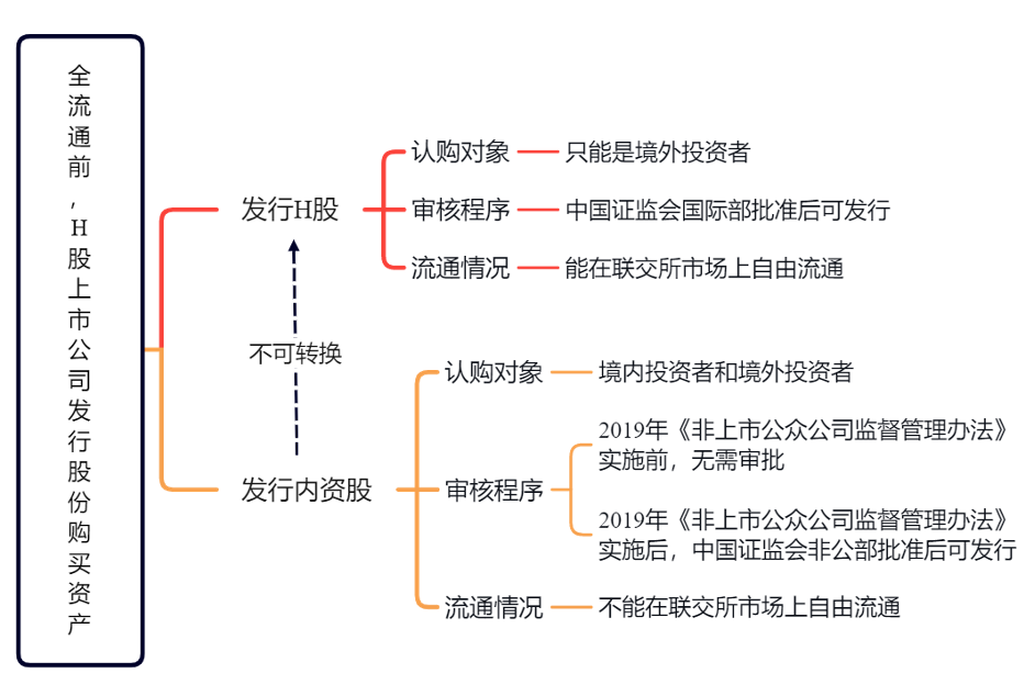 “全流通”前,H股上市公司可发行H股、内资股两种股份购买资产总体情况如下: