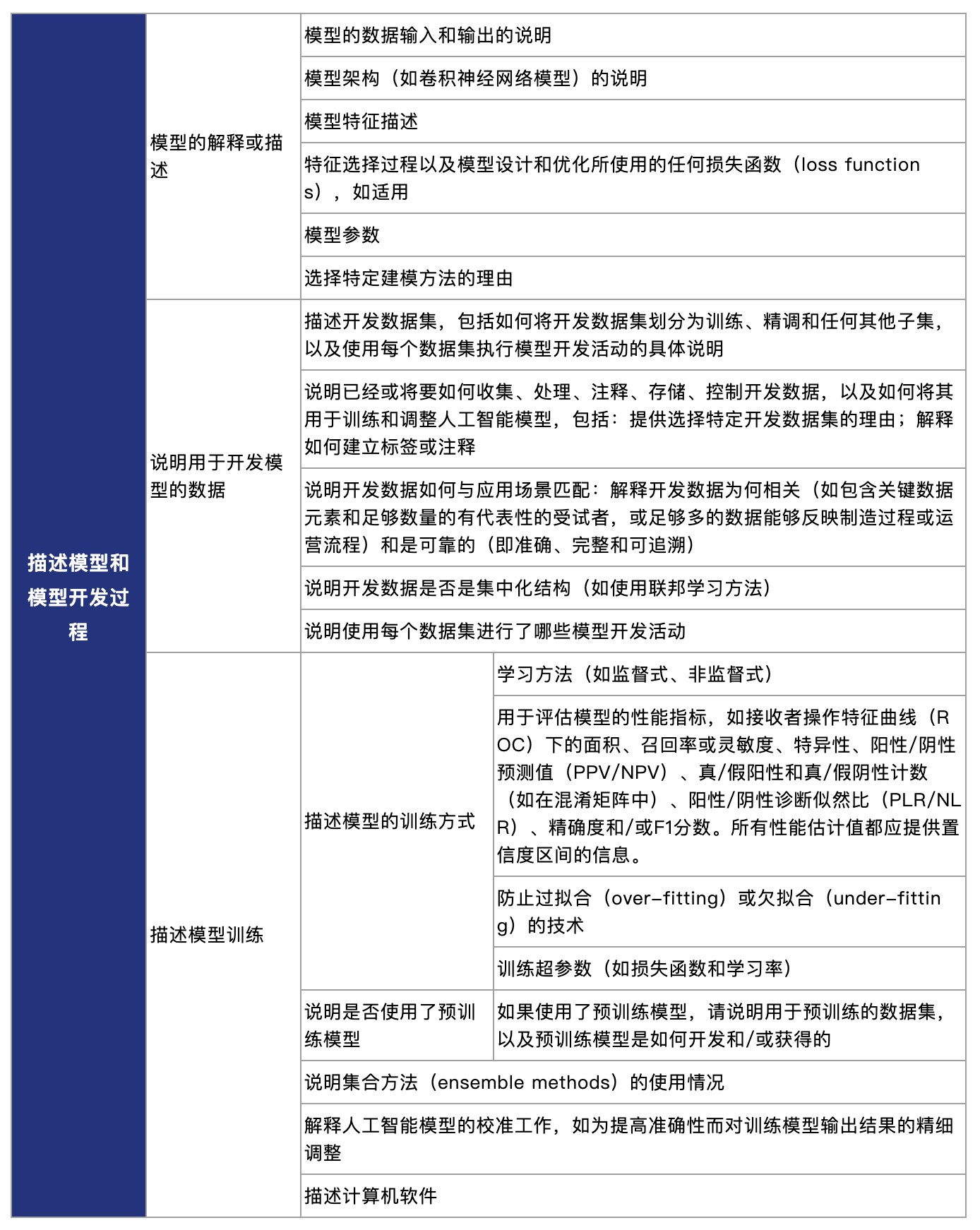 模型描述和开发过程的要求详见表一,模型评估过程的具体要求详见表二。