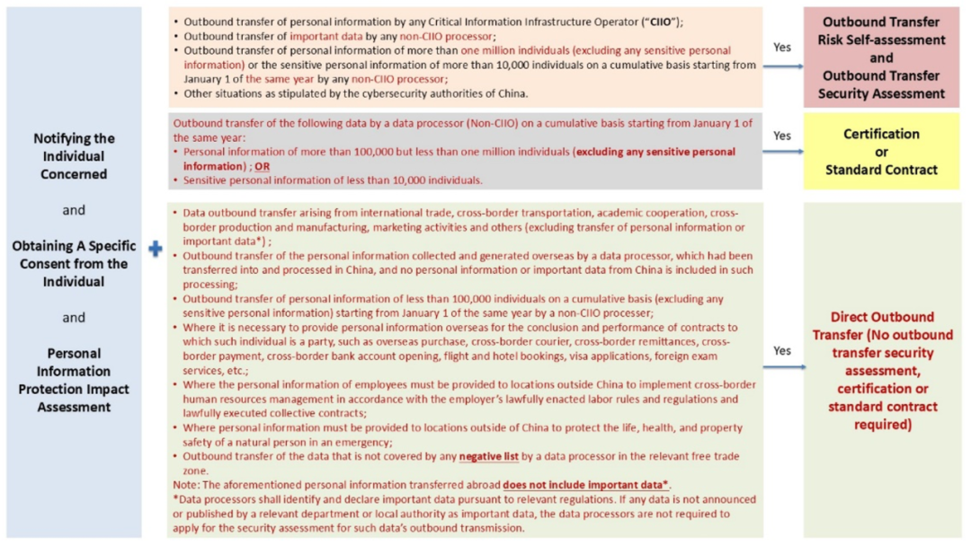 In addition to the aforementioned dimension of human genetic resources, China also has regulatory requirements in the area of data security, including those related to the cross-border transfer of data. In terms of basic laws, China has established a three-pillared mechanism including the Cybersecurity Law (the “CSL”), the Data Security Law (the “DSL”) and the Personal Information Protection Law (the “PIPL”), and has promulgated a number of other supporting laws, regulations and rules on this basis, with the subjects of regulation echoing and overlapping each other. In particular, a special regulatory system has been established in the area of cross-border transfer of data/personal information. In addition to the regulatory and procedural requirements for cross-border transfer of personal information (which will be discussed in detail below), there are also regulatory requirements in the dimension of data security.